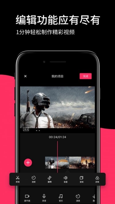 1、从拍摄到编辑都可以在一款软件中完成,有很多工具可以随时使用,让视频不再苍白。