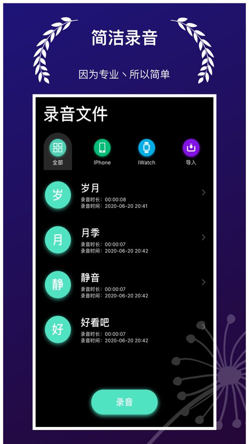 简明录音是一款专门为用户推出的手机录音软件,功能非常强大,让用户可以在这里轻松录音,录制的音质非常好,为您提供全真音质。还可以调节录制文件的播放速度,必要时来下载!