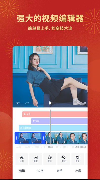 轻松裁剪视频,加字、加水印、加音乐、加录音,功能强大,应有尽有;