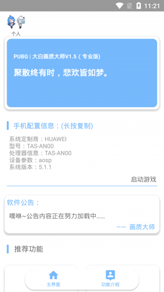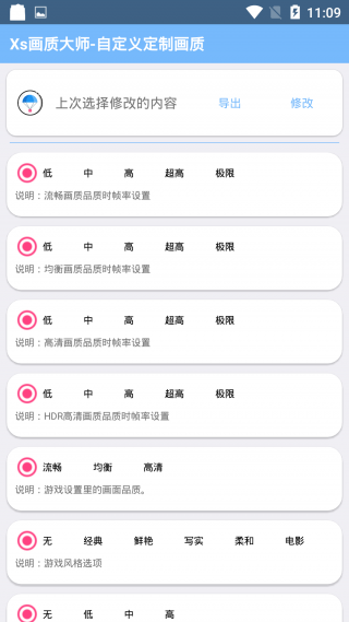 画质大师app是专门为和平精英吃鸡手游特别设计打造的一款画质调整修改软件,有了这款软件,我们就可以在任何品牌手机上开启高画质高帧率游戏画面了,让你拥有极致的画面享受,天天吃鸡不停。