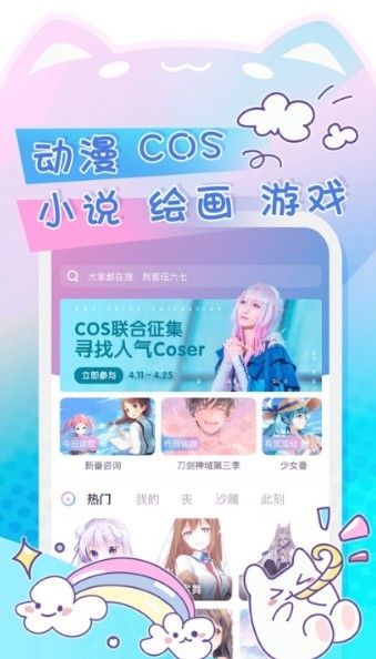 追求二次元世界的你还孤身一人吗?这是一个精彩有趣的互动交友平台,他们都是次元爱好者,可以随时互动社交,还可以搜索自己喜欢的剧集、漫画等,资源可以快速更新,可以随时互动,还可以组织活动、打开cosplay等。