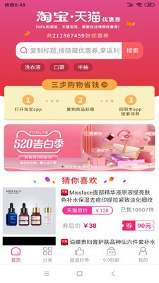 手机淘宝优惠券特别版非常好用,让用户打折省钱购物,收藏的商品非常丰富,价格超低,有上百万款。呵呵,这样就可以轻松省下一半钱,而且平台做得认真,没有因为价格低而出现质量问题,所以没有质量问题。为什么不快点来呢?