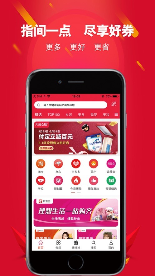 搜券可以为用户提供海量的购物券,让用户可以随时在这里领取优惠券和抵扣。该平台为您提供了女装、美妆、母婴、家居百货等海量商品,并进行了详细分类,让用户可以根据类型快速选择所需商品。这是各种大额优惠券。你可以省钱订购你需要的正品。