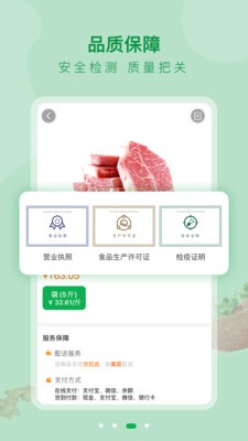 支持关注食品类商品,方便下次购物。提供一站式购物物流服务,冷链配送,送货上门;需要购买食品,选好数量再下单;可以搜索查询食材,可以选择货到付款的交易模式;可以帮助餐饮业更好地找到购买渠道目标;各类食材一应俱全,新鲜果蔬、速冻、肉类一应俱全。