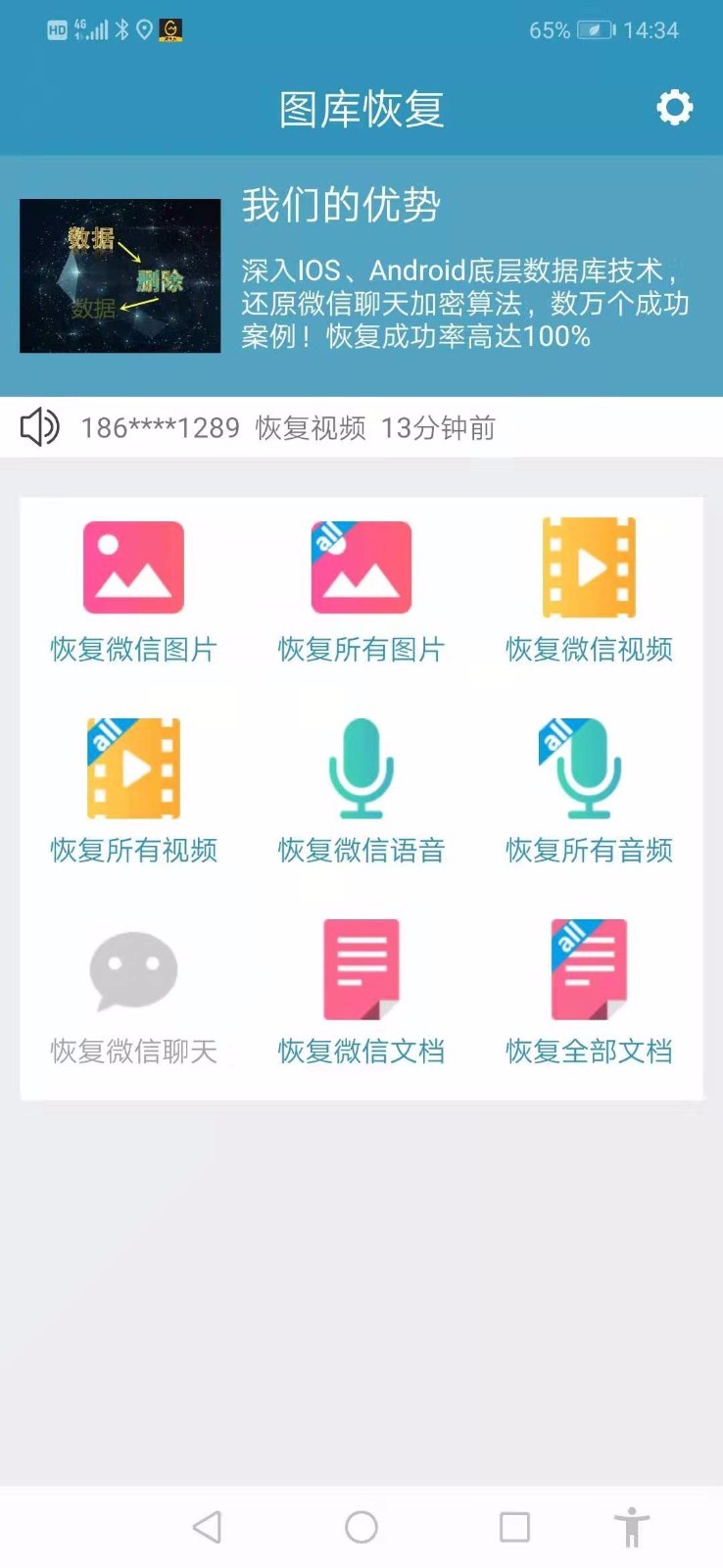 大量删除的数据可以帮助您恢复,包括本地误删除的图片文件。微信聊天图片、微信聊天语音、微信视频、微信文档等还可以助力还原,让手机更便捷;需要前来下载图库并还原安卓版的用户,不用怕照片被误删!