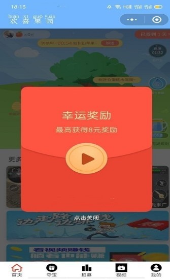 3、收集水滴、浇水、生苹果、换红包奖励。