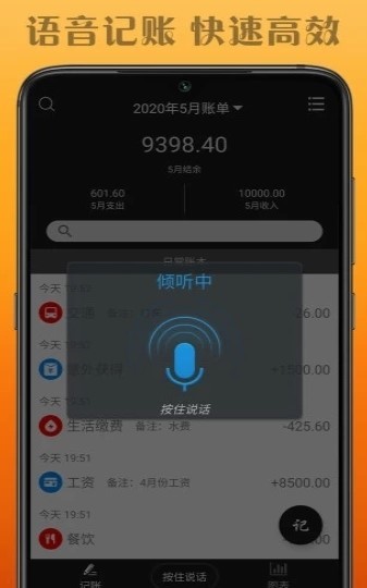 2、快速记账:操作非常方便,点击主页右下角的记账按钮即刻记账;