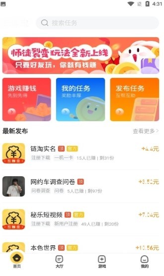 1、只要手机能快速完成这里的大量任务,任务难度级别不同;