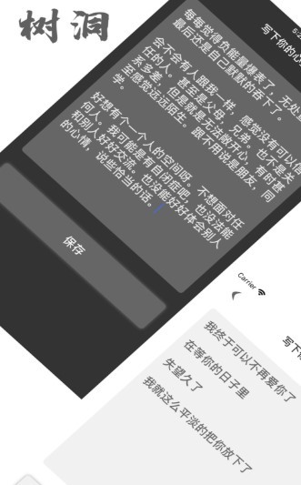 你生活中遇到过什么情感烦恼吗?这是一个超级舒适有趣的平台,让你互动,发布你的感受,找人交流,和别人聊天等等。总会有人回应你,启发你,当然你也可以是别人的树洞。