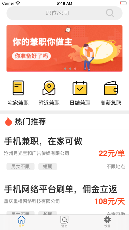万轩兼职是一款非常好用的手机在线兼职搜索软件,软件中有很多兼职信息,让用户可以在这里轻松找到各种兼职,工作类型超级多,满足了用户的各种求职需求,非常好用,快来下载吧!