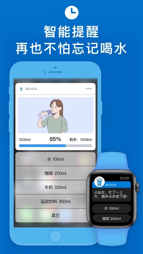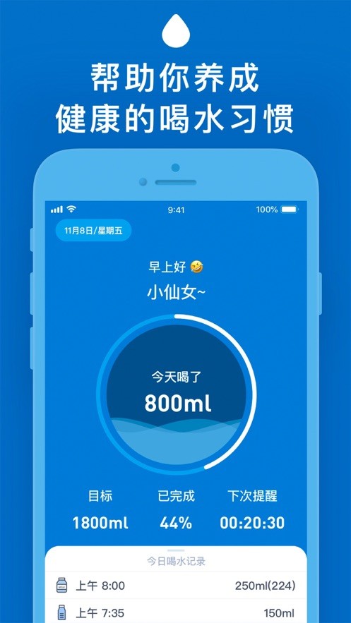 3、可以自定义饮水定时,帮助您按时喝水;