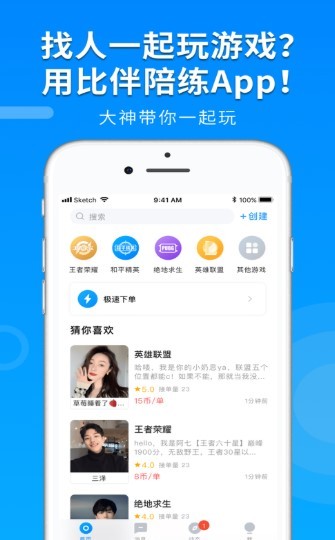 搭档陪练是一款非常好用的手游陪练软件,有很多游戏大佬,各种热门的电竞游戏都可以玩,而且非常强大,可以帮助用户提高游戏技术,非常好用,让用户可以轻松下载使用,快来试试吧!