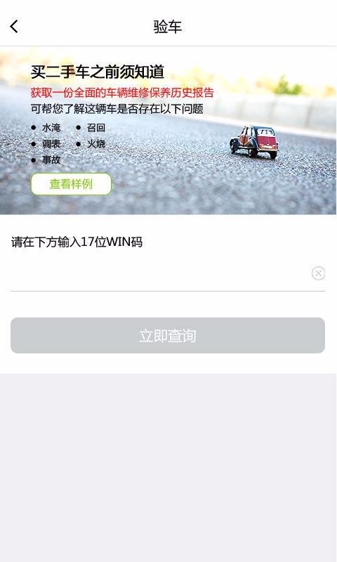 独立检查车辆,从此可以查看车辆是否有水淹、烧毁、事故等情况;