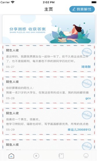 一个小小的解忧集市,对你来说就是一个解忧的小树洞。有什么问题,或者有很多压力、心情不好等情绪的时候,随时都有各种各样的朋友在聊天,如果你想放松,任何问题都可以快速解决,在这里可以模仿大家发泄情绪,可以随时互动,无聊的时候还会有人来陪你聊天。随时互动,轻松快乐交友,趣聊也不错,值得体验一个解忧平台。