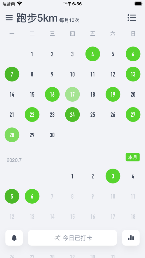 5、图表统计,展示每年打卡结果,满怀成就感,每天为自己设定小目标。