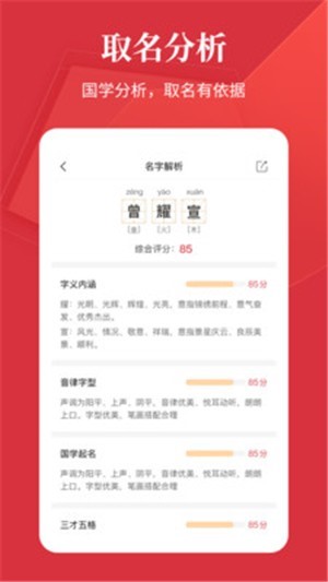 当宝宝出生时,父母们想给孩子起一个好听、有意义的名字,取名APP可以帮到你。这款APP,将中国古典文化与现代科学算法相结合,为用户提供更好听、更有内涵、更独特的名字。命名测试名称应用程序还会对各种名称进行评级,并为用户推荐更好的名称。喜欢的朋友,快来下载试试吧。