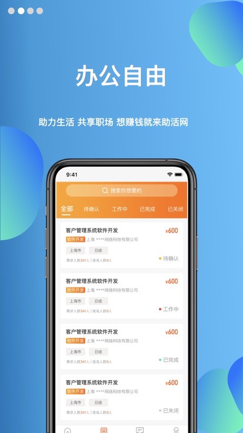 2、随时随地自由接单,一站式灵活用工共享经济平台,空闲时间还能赚钱,好用,智能交易平台。