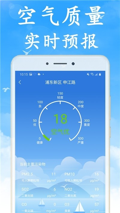 全国实时天气预报是一款非常实用的天气预报APP,为您打开每日彩云好天气、实时和24小时天气预报、空气质量、紫外线、生活指数、实时和24小时天气预报。实时24小时天气预报,助您从容应对天气状况,直面环境污染,带您轻松出行。有多种场景,游玩、垂钓、亲子、吉祥等四大板块,适合各种场景,让大家都能安全出行。