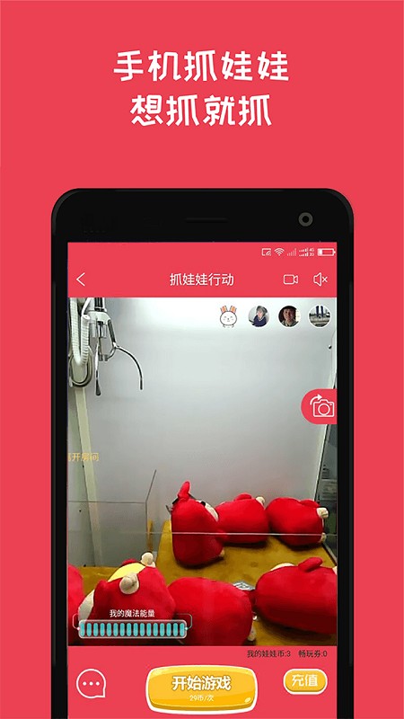 抓娃娃动作是一款全新的手机抓娃娃软件,免费送货全国,良心握命中率高,容易接触流行娃娃,并独家抢娃娃讨论社区,告别虚拟玩法,远程玩偶秀运营!独乐不如乐乐,随时随地,双角度对准,网速流畅,易操作易抢,成功概率极高,感兴趣的朋友赶紧下载挑战吧。