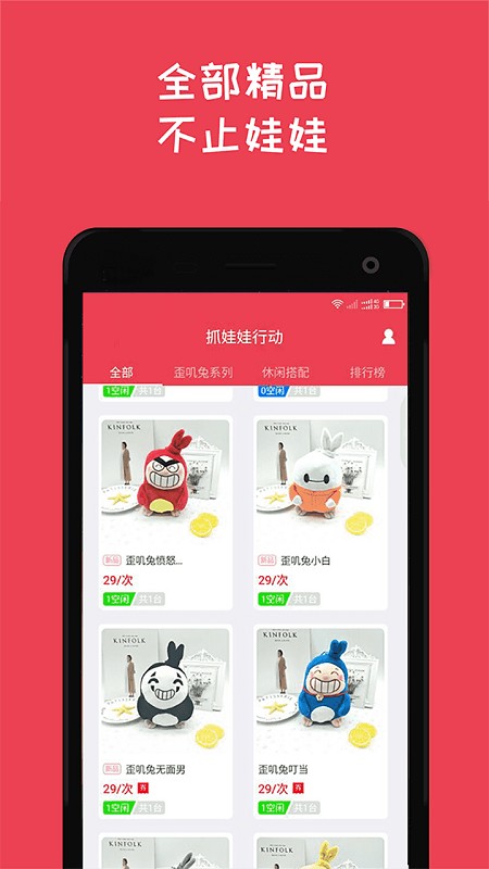 抓娃娃动作是一款非常好用的手机抓娃娃软件,该软件有很多娃娃商品,让你可以自由选择你喜欢的玩偶机,超级好用,满足用户抓娃娃的需求,不用出门体验不同的娃娃玩法,快来试试吧!