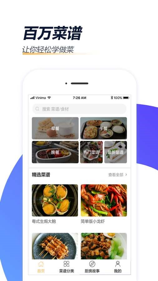 2.用户可以通过对食材、工艺、菜肴、功能等进行分类,找到合适的食谱,还可以一键搜索精美菜谱。非常方便