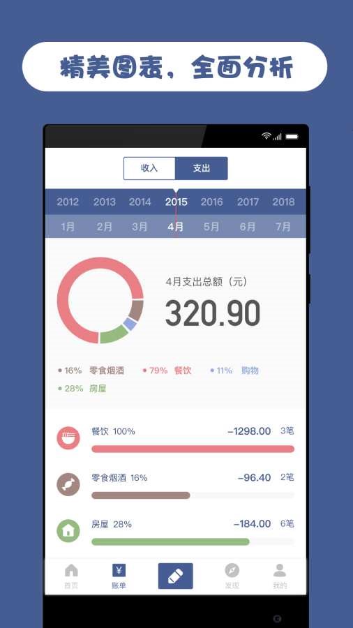 2.软件为用户提供月度消费报告,以图表的形式展示月度消费情况。让您更多地了解自己的消费水平