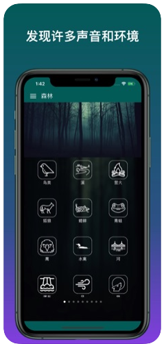 享受分为不同环境的各种轻松声音。您可以混合众多自然声音、音乐并调整各自的音量,根据您的心境营造自己的轻松氛围。