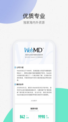 独家介绍Webmd以及国外其他高质量的医学和健康知识,以创建集诊断,治疗和预防症状原因于一体的医学百科全书。