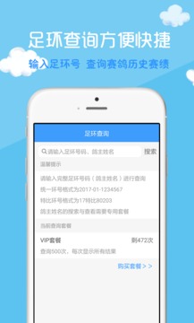 4、足环查询:用户只需在搜索框输入信鸽的足环号,即可准确获知该信鸽的详细信息,以及该信鸽的历史赛级。
