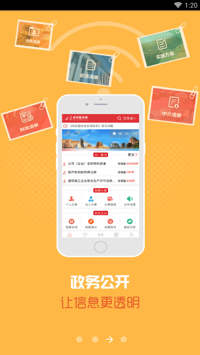 甘肃政务服务网是一款非常优秀的软件,将当地的政务工作都详细展现给用户,快速实现政民互动,让用户与政治人员的沟通更加顺畅,能有效体察民意。软件实时更新各种政务新闻,让用户了解最新政策信息,及时发表自己的意见,为自己的生活带来更多便利。除了政务资讯,软件将各种便民服务都集中起来,让用户在一个软件上就能办理各项事务。用户可以解决日常公共缴费,医疗用药,教育互动,社保查询、出入境办理等等,让所有事务的办理都变得更加高效省时,给用户的生活带来舒适的享受。