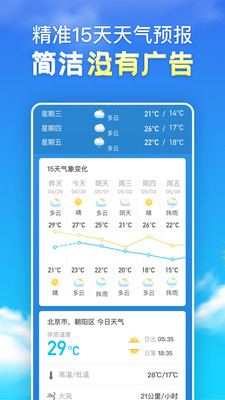 天气预报,全国天气服务类平台,支持全国城市及县级区级天气信息查询。实时监测阴晴雨雪,实现分钟级天气预报,拥有权威气象局天气预报数据,是一款简单又实用的天气预报小工具软件,用户无需登录即可使用。 365天天气预报,你所关心的各地天气情况。weather,温度,空气质量,未来几点几分下雨、多云、晴天、下雪都一目了然,不用在墨墨迹,天天彩云通。