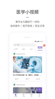 2、医学小视频:丁香园集专业与趣味于一体的临床操作、医疗新闻、医生日常;