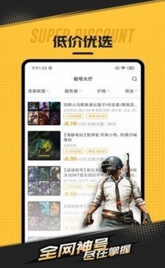 天米租赁APP是一个专业的账号租赁平台,专业的游戏账号租赁平台,让双方都能互惠互利,安全放心,一键快速接入电脑游戏,很多游戏账号都可以为你租赁。TIMI租赁APP,无论是手游还是网游,都可以为用户提供账号租赁服务。