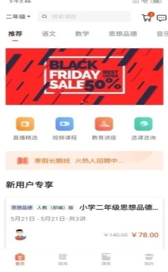 1、非常完整的教学体系,为用户提供直播课、视频课、题库三个部分;