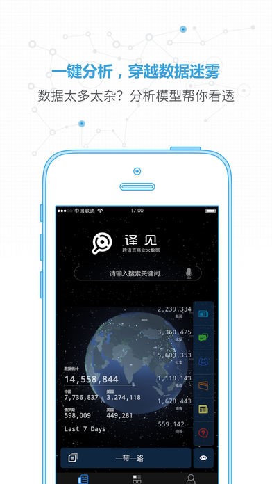 它是一个非常全面、实用、智能化的大数据分析平台。APP收集国内外最新动态资讯,并可在多语种之间切换,非常好用,有了它,各种国外热点新闻也能被及时关注!而且,APP致力于数据整合和数据分析,让各种趋势的数字化展示、社会调查和事件监测等,非常智能。喜欢的朋友,快来下载吧,让你第一时间知道最新信息。