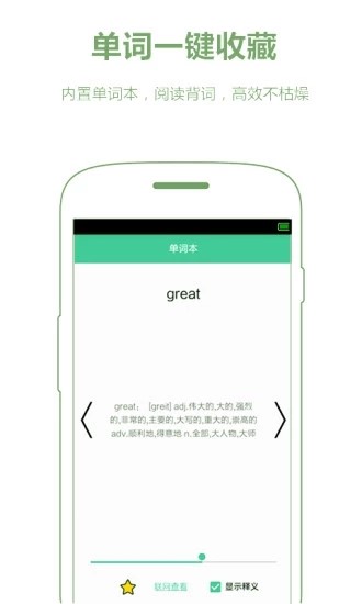 1.APP内置英语词典,用户只需一键即可离线查单词,无需再次输入