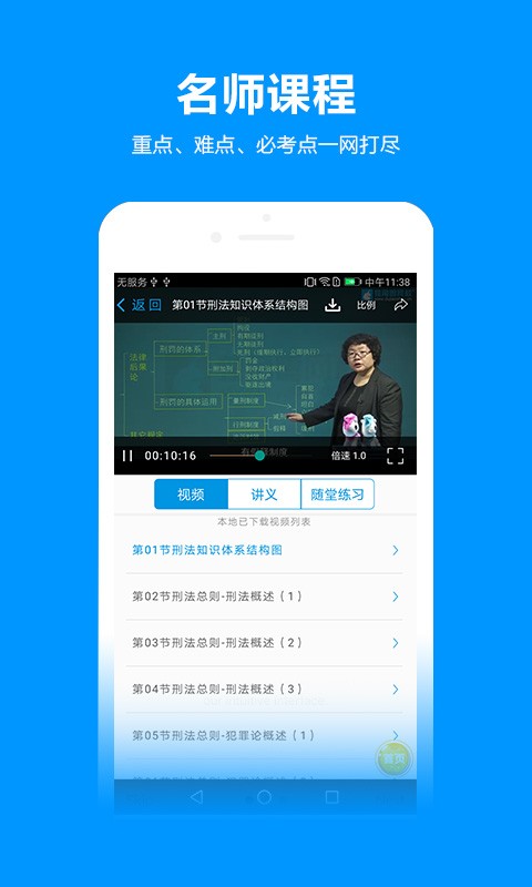 独角兽教育APP为用户提前准备好各大中型考试的课程内容,涵盖了包括司法考试、法学硕士、会计职称考试等在内的广泛课程,以及各种精细化的教学管理等;音视频教学方式提前为用户准备,用户可以在线上或线下进行学习培训,并随时操控自己的学习时间,让学习培训更高效;考题丰富多彩,每一种题型都是一位老师细致的答题分析,帮助学生学习和训练大量答题技能,顺利应试不再是难事。