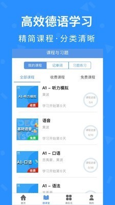 德语APP是一款高效、实用、便捷的德语学习APP,用户可以通过手机学习专业德语课程,提升德语水平。APP为用户提供了海量优质学习课程,根据用户的学习基础进行评分,帮助用户有针对性地学习。用户还可以通过APP背单词、与老师交流、参与话题讨论。