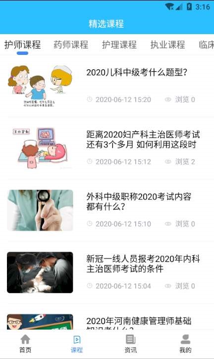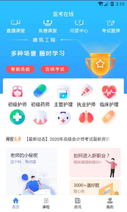 体检在线是专业的体检学习平台,为用户提供丰富的考试咨询和课程资料,帮助用户通过考试。APP涵盖小学护师、初级药师、称职护理、临床护理、执业护士等多方面学习内容,全面满足用户需求,让用户随时随地学习备考。体检在线APP内置了海量优质学习课程和题库,让用户学到更多知识,轻松备考。