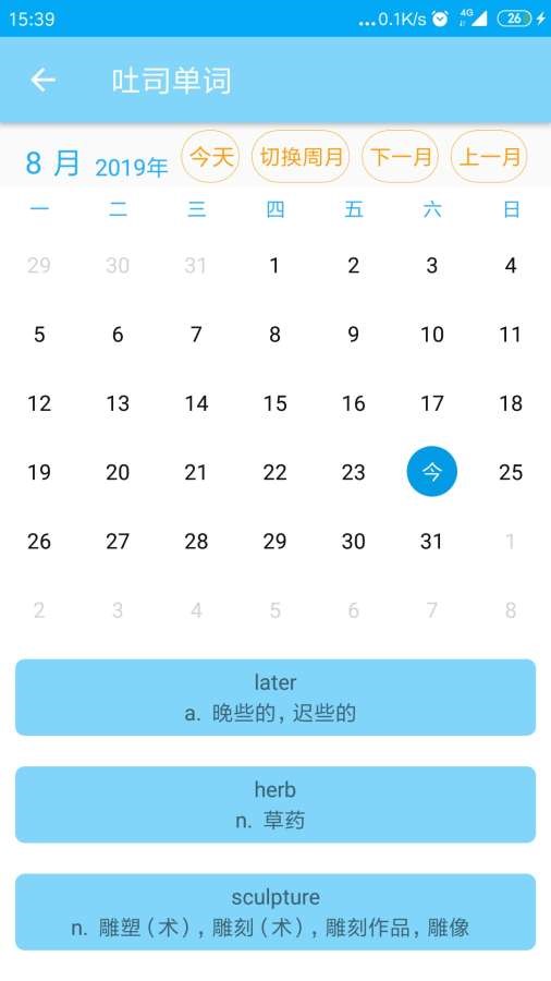 3.APP支持检查您已记住的单词和您的学习日历。为了帮助您了解日常学习进度