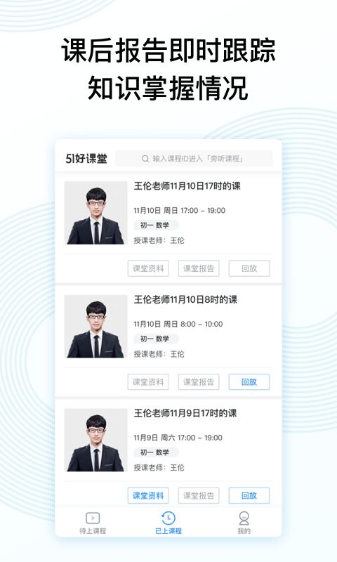 2、51好课为学生提供了更优质的师资资源,老师可以与孩子们面对面互动,直接提问,非常方便。还可以随时收看录播课和复习