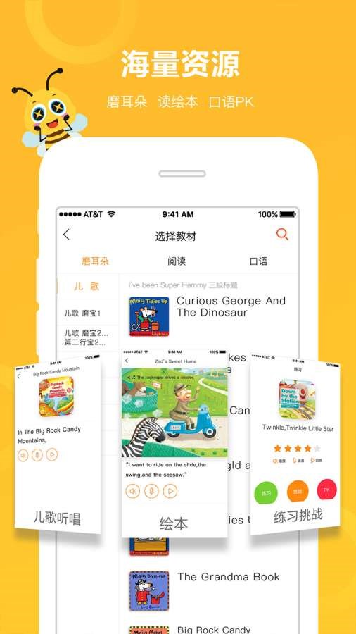 2、APP通过儿歌、绘本、动画、角色扮演等学习形式,提高孩子的学习兴趣,让孩子爱上英语