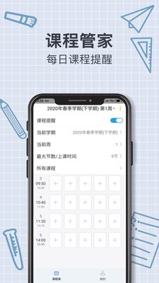 2.您可以在课表中添加项目、考试等,设置闹钟,APP会自动提醒您