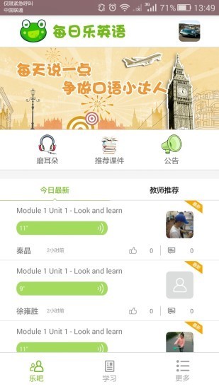 1、乐家乐英语APP非常贴近学校教学内容,与学校课堂同步,让孩子们学习更全面,让老师的教学更轻松