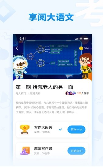 悦读大语文是APP,面向3-12岁儿童的全面丰富的学习服务功能,自然能快速提升语文成绩,方便更好的作业练习,科学培养孩子终身阅读习惯,让孩子爱上阅读。涵盖轻课AI:国学、写作、启蒙绘本等课程,全面丰富的学习服务提供,线上线下整合学习。