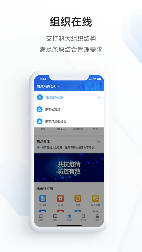 1、支持会议、事件等各类应用集合,按角色定制工作台,切换不同身份进行个性化配置,通过身份组合实现管控;