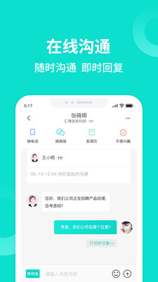 招工作你还在一家家的跑吗?汇博人才网一款求职人平台,在这上面有海量岗位为大家提供,还支持视频面试,让大家更加找工作更加有效率!如有需要欢迎下载!