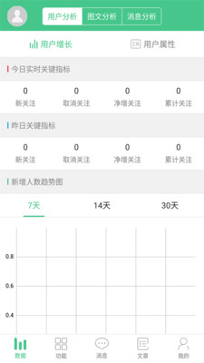 3、统计公众号粉丝变化、图文素材转化率、粉丝消息增长情况