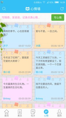 2.用户可以在APP中浏览其他用户的心情语录,也可以自由表达各种感受、祝福、祝福等,用文字记录您当前的感受
