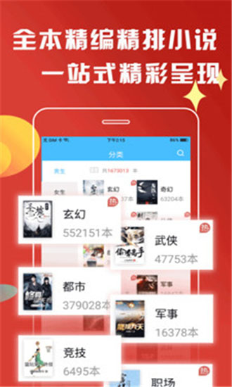 1、小说类目:玄幻小说、奇幻小说、仙侠小说、言情小说、都市小说、历史小说、军事小说、科幻小说、游戏同人小说等